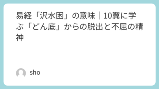 易経 易経「沢水困」の意味|10翼に学ぶ「どん底」からの脱出と不屈の精神 易経の第47卦「沢水困」を徹底解剖。漢和辞典の語義序列から「困(こまる・かこむ)」の真意を精査。沢に水がない「枯渇」の時期、なぜ「言葉」は信じられないのか?十翼が説く、窮しても志を失わない「君子の態度」を解説。 2025.02.02 易経