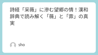 詩経 詩経「采薇」に滲む望郷の情!漢和辞典で読み解く「薇」と「霏」の真実 詩経・小雅の「采薇」を徹底解説。薇(ぜんまい)を摘みながら帰郷を願う兵士の心を、漢和辞典の語釈(1, 2, 3...)に基づき一字一字検証。なぜその意味を採択したのか、論理的根拠を明示します。行軍の苦難と再会の哀しみを深く理解できる内容です。 2025.11.02 詩経