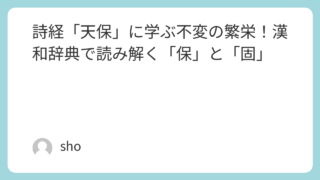 詩経 詩経「天保」に学ぶ不変の繁栄!漢和辞典で読み解く「保」と「固」 詩経・小雅の「天保」を徹底解説。天の加護と国家の永続を願う本作を、漢和辞典の語釈(1, 2, 3...)に基づき一字一字検証。なぜその意味を採択したのか、論理的根拠を明示します。九つの「如(ごとし)」が示す繁栄の形を深く理解できる内容です。 2025.12.14 詩経