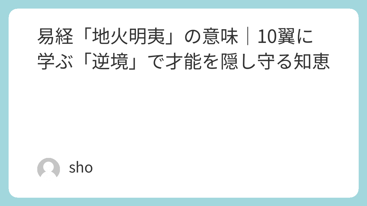 もしあなたが今、攻撃に晒されているなら、第五爻の**「箕子(きし)」**のように、わざと「できないフリ」や「やる気のないフリ」をしてみてください。象伝が教える「用晦」の知恵を使い、自分の中の希望の火を大切に守りましょう。第六爻が示すように、あなたを苦しめる闇(暴君や悪条件)は、いつか必ず自ら崩壊します。その時、あなたが内面に秘めた光を失っていなければ、誰よりも早く新しい太陽として昇ることができるはずです。