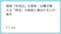 また、『象伝(しょうでん)』では「地の中に水があるのが師の形である」とし、そこからリーダーが学ぶべき姿勢として「容民畜衆(ようみんきくしゅう)」を挙げます。これは「広い心で民を受け入れ、養い育てること」。軍隊(水)の強さは、その基盤である大地(民)がどれだけ豊かで安定しているかにかかっていると説いています。