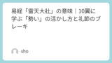 もしあなたが今、絶好調なら、それは第三爻の**「甘臨」、つまり自分に甘くなっていないか自問すべき時です。また、五爻のように「知恵ある者に任せる」勇気を持ってください。そして、卦辞の「八月有凶」**を忘れず、今の豊かさを「教育」や「仕組み作り」に投資すること。その備えがあれば、たとえ季節が移り変わっても、あなたの築いた基盤は揺るぐことなく次なる春を待てるはずです。