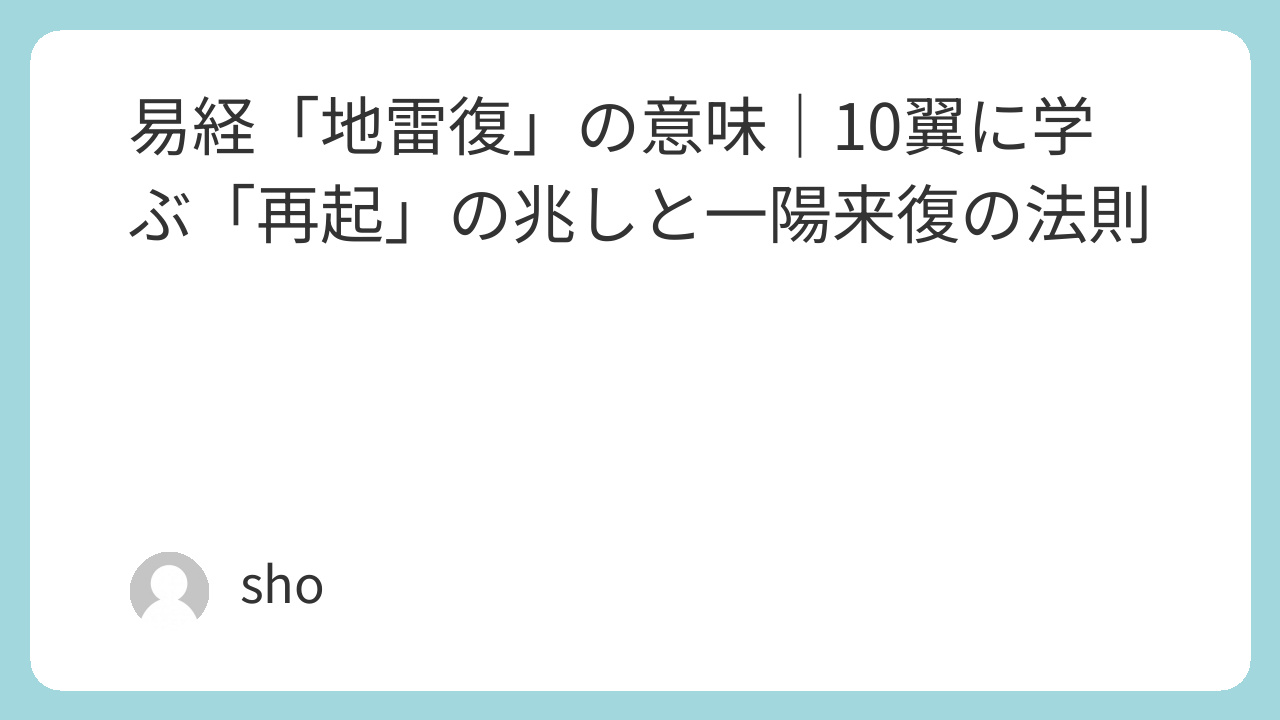 易経の二十四番目にあたる**「地雷復(じらいふく)」は、大地(地)の底で雷(動き)が鳴り響き始めた姿を象徴しています。すべてが失われた「剥」の直後に訪れる、たった一つの光。日本でも冬至の時期によく使われる「一陽来復」の語源となった卦です。この記事では、卦辞の漢字を漢和辞典の語義序列から深掘りし、「十翼(じゅうよく)」**が教える「再起を確実にする方法」を解説します。