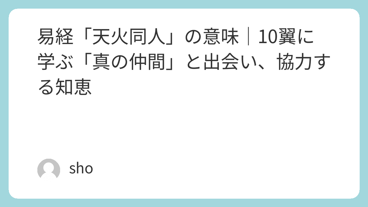 もしあなたが今、仲間のことで悩んでいるなら、それは**「宗に同ず」**の状態、つまり特定の誰かや古い慣習に執着しすぎているからかもしれません。一度、外の「野」に出て、多くの人の目に触れる場所で自分の志を語ってみてください。最初は理解されず泣くこともある(五爻)かもしれませんが、その先には必ず、共に笑い、共に「大川」を渡れる最高の同志が待っています。