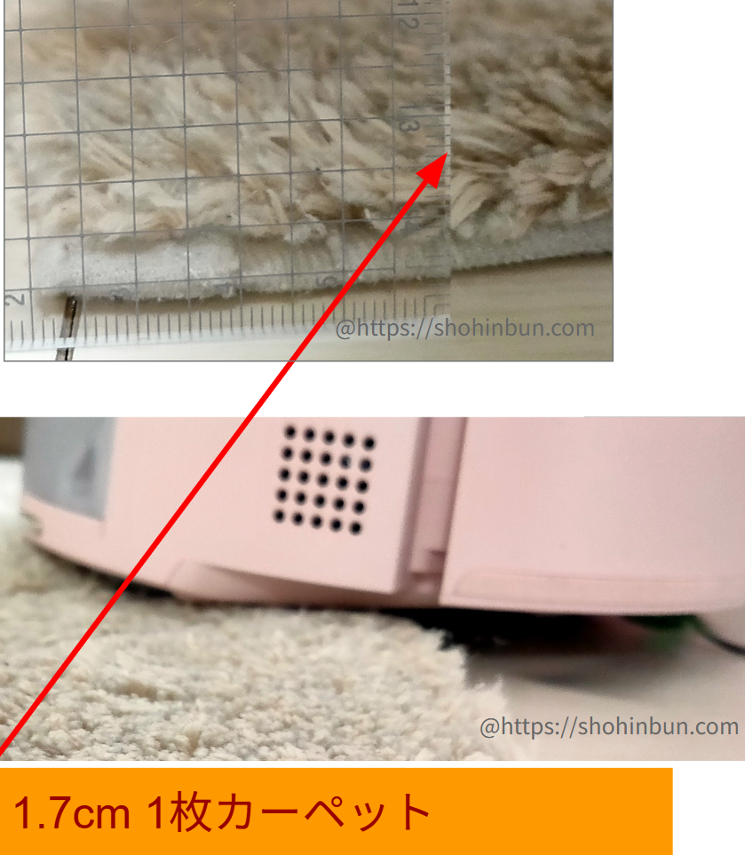 このカーペットは70cm x 50cmの小さい物で、他のルンバだと動いてしまい、蹴散らしていってしまったので実験しました。見事クリアです。