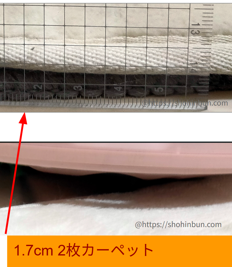 • 1.7cm(2枚重ねの絨毯): 固定なしのフリー状態でも、めくり上げることなくスムーズに登頂。