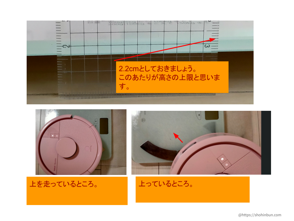 • 2.2cm(体重計): 単体では厳しい高さも、手前にビニールシート等の「足掛かり」があることで、タイヤがグリップを稼ぎクリア。