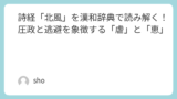 次回は、厳しい冬の中で揺るぎない志を歌う**「北風(ほくふう)」**を解説します。吹き荒れる北風を背に、真実を貫く人々の姿を、再び字意から探ります。